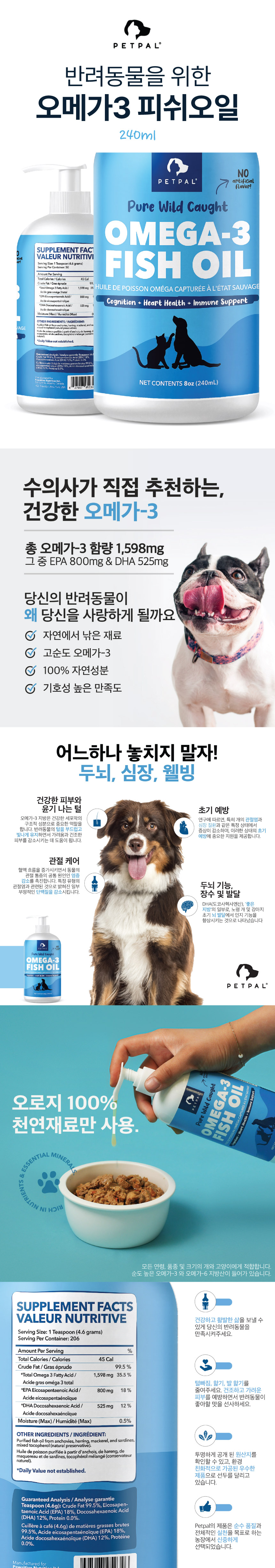 펫팔 반려동물 오메가3 와일드 피쉬오일 필수 영양 240mL