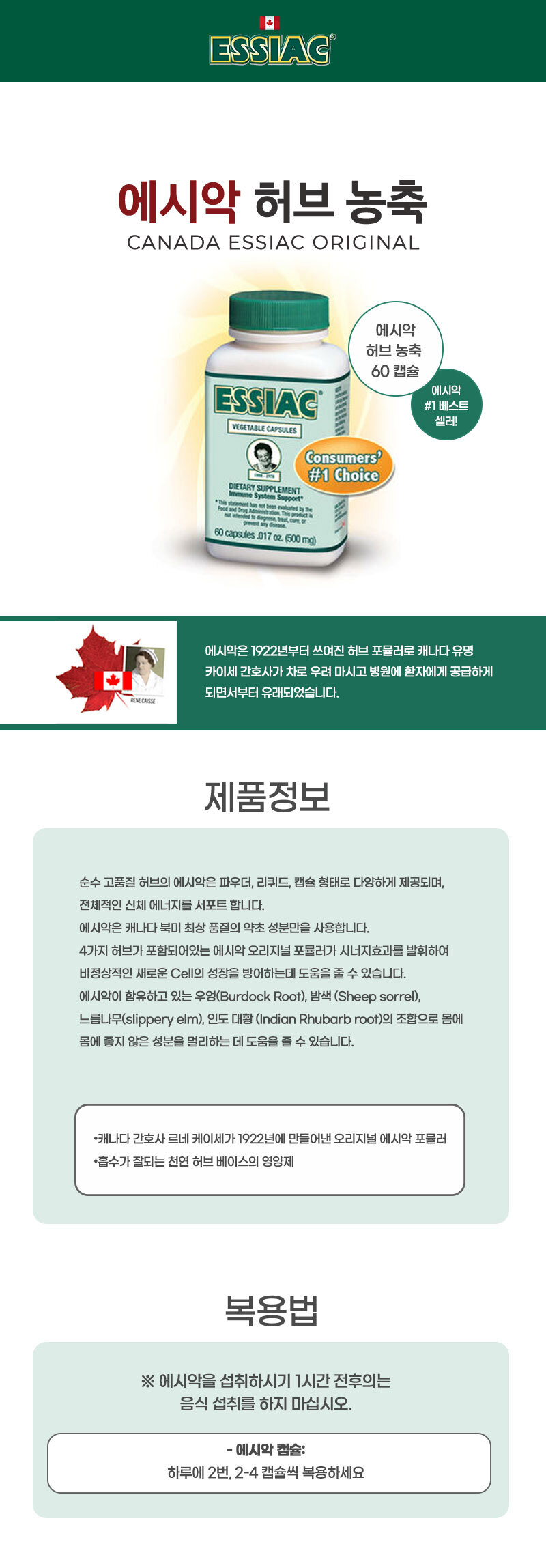 3병 에시악 자연 허브 캐나다 약초 베지 60정