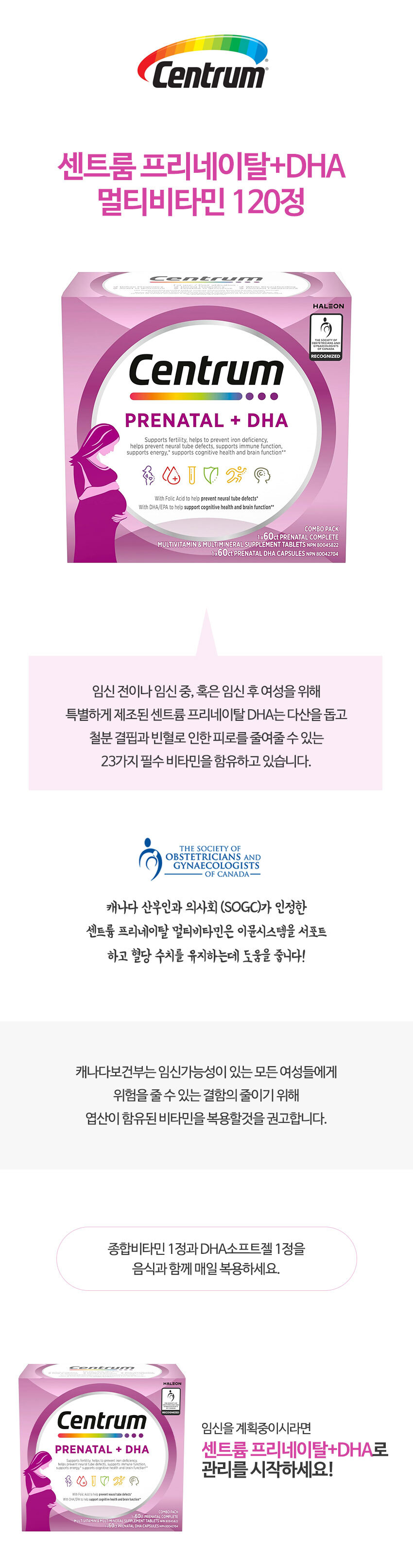 센트룸 프리네이탈+DHA 멀티비타민 60x2Ct임산부용