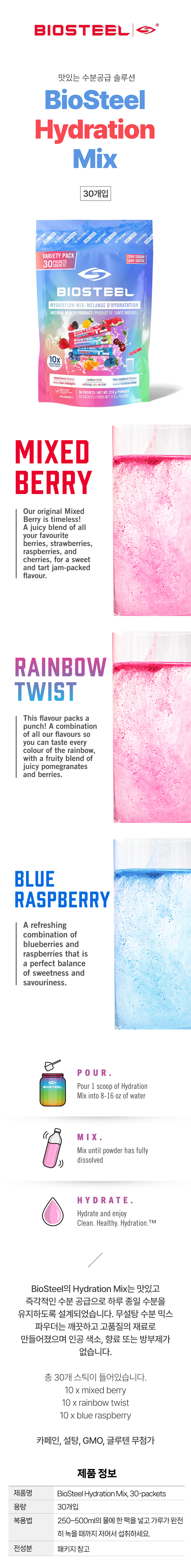 코스트코 BioSteel 바이오스틸 하이드레이션 믹스 30개입
