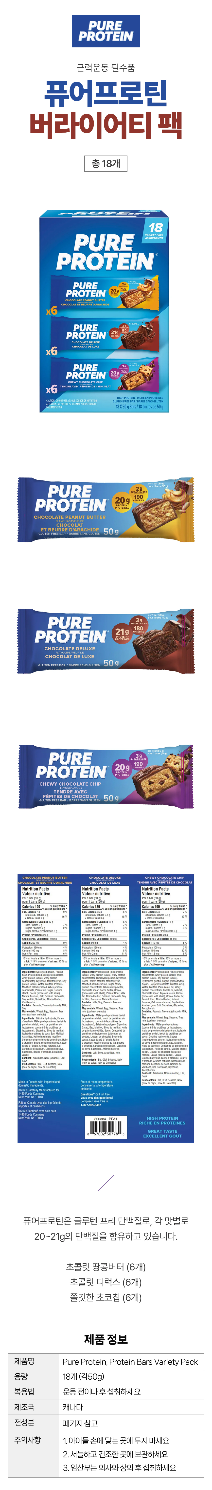 퓨어프로틴 프로틴바 3종 버라이어티팩 18개입