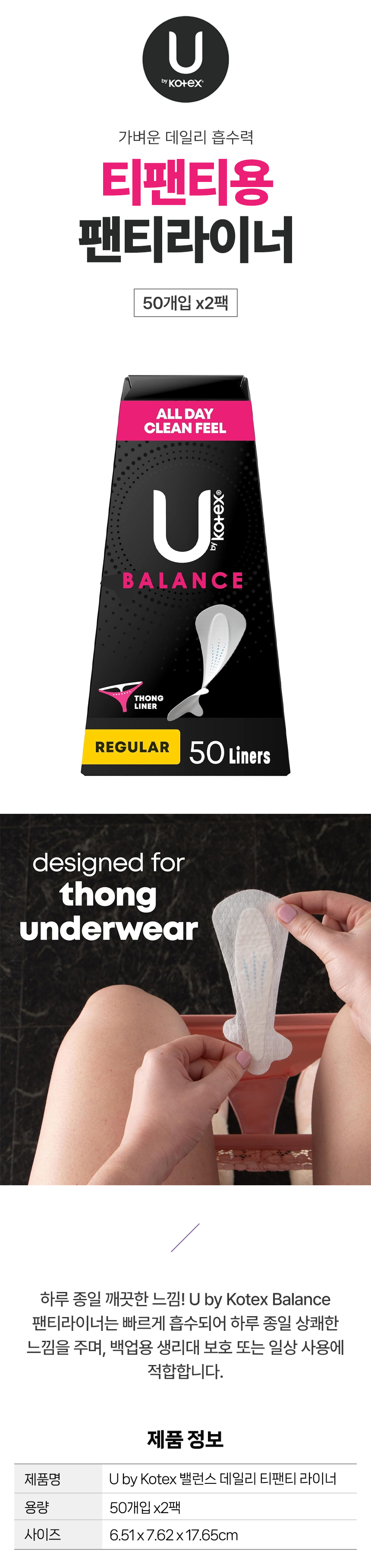 U by Kotex 데일리 티팬티용 팬티라이너 50개 2팩 세트