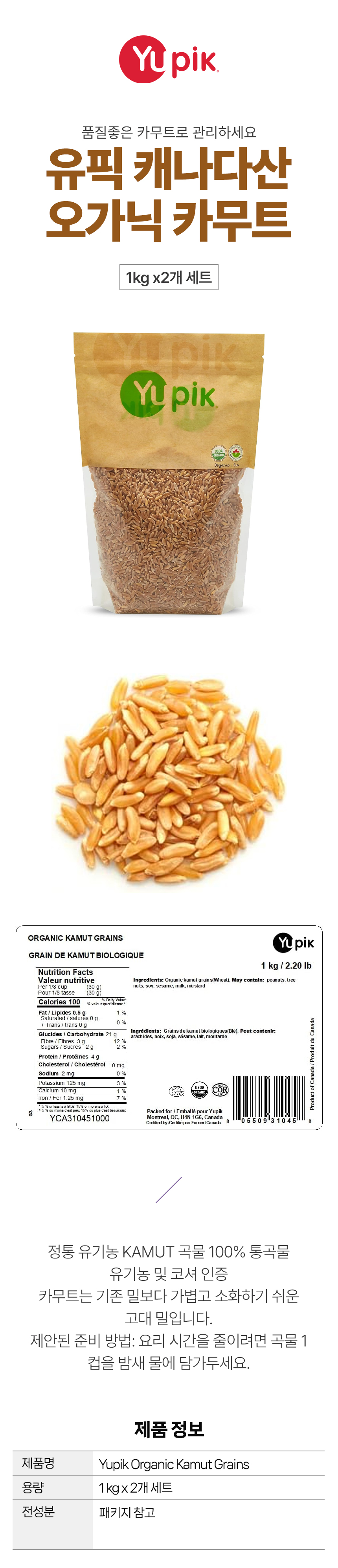 유픽 캐나다산 오가닉 카무트 1kg 2개 세트