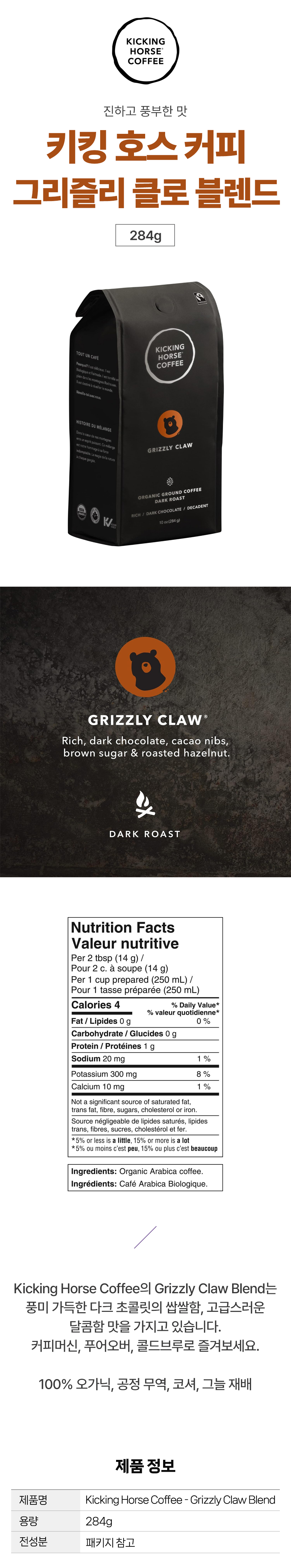 키킹 호스 커피 그리즐리 클로 블렌드 그라인드 커피 284g