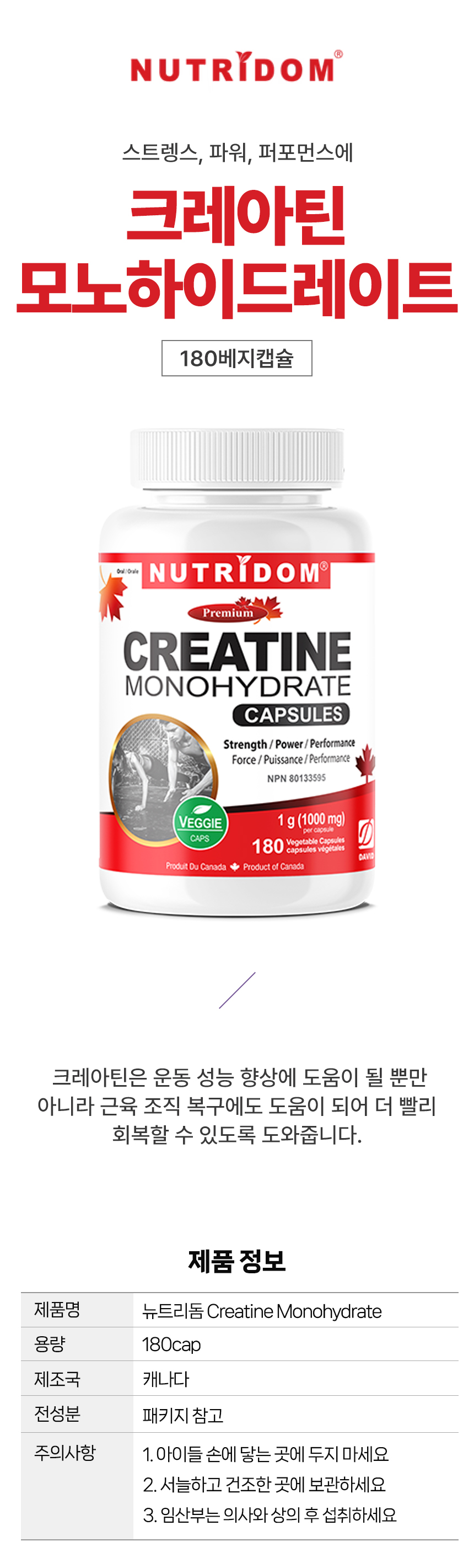 뉴트리돔 크레아틴 모노하이드레이트 180캡슐