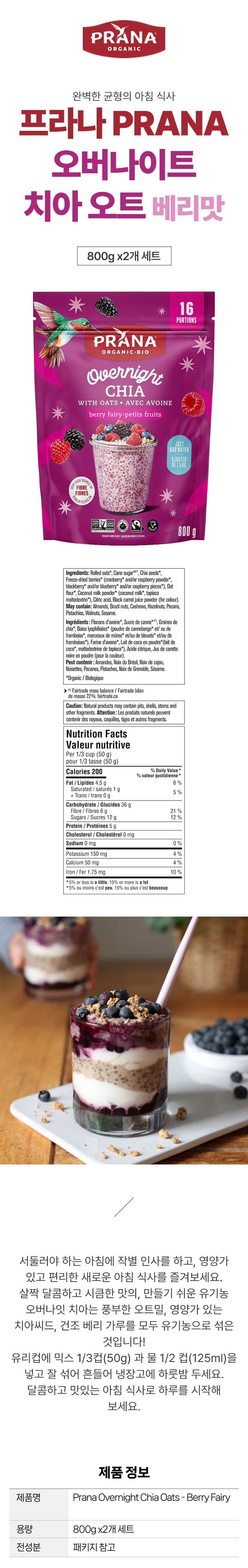 프라나 오버나이트 치아 오트밀 베리맛 800g 2개세트 캐나다 코스트코