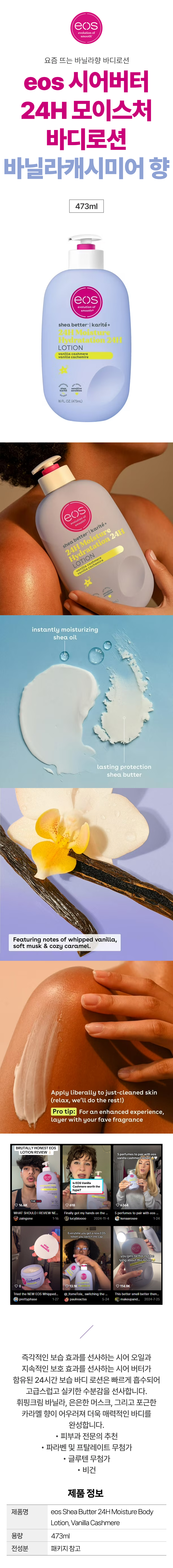 eos 이오스 24H 모이스처 바닐라 캐시미어 바디로션 473ml 해외 틱톡 핫템