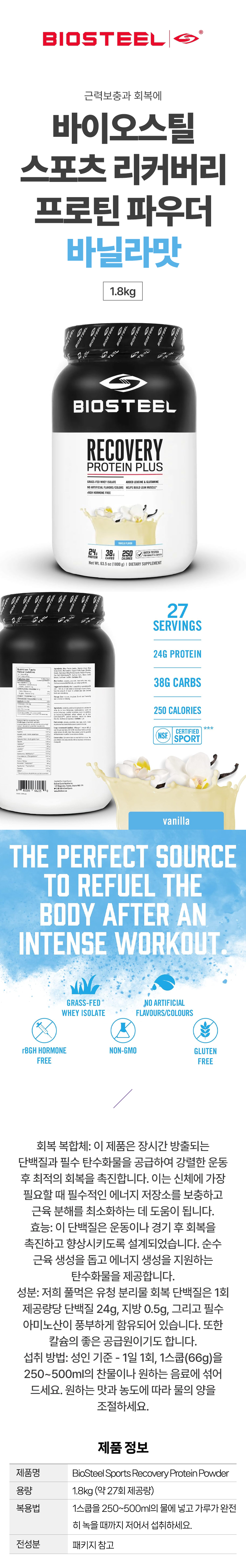 바이오스틸 스포츠 리커버리 프로틴 파우더 회복 단백질 바닐라맛 1.8kg