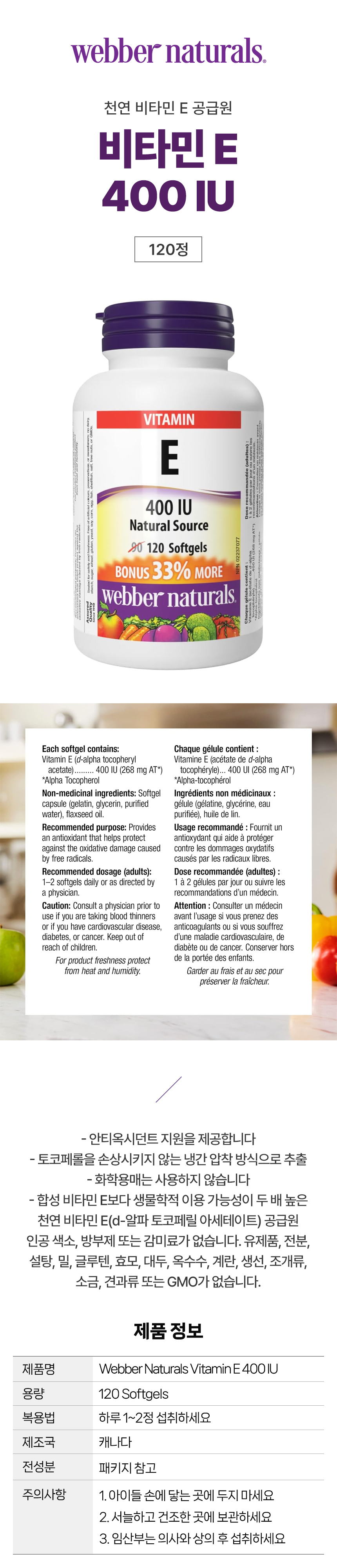 웨버네추럴스 Vitamin E 비타민E 400IU 120정 안티옥시던트