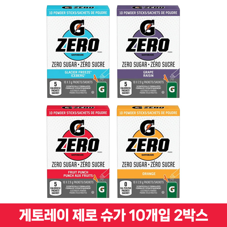 게토레이 제로 슈가 전해질 파우더 10개입 2개세트 4가지맛 무설탕 수분보충