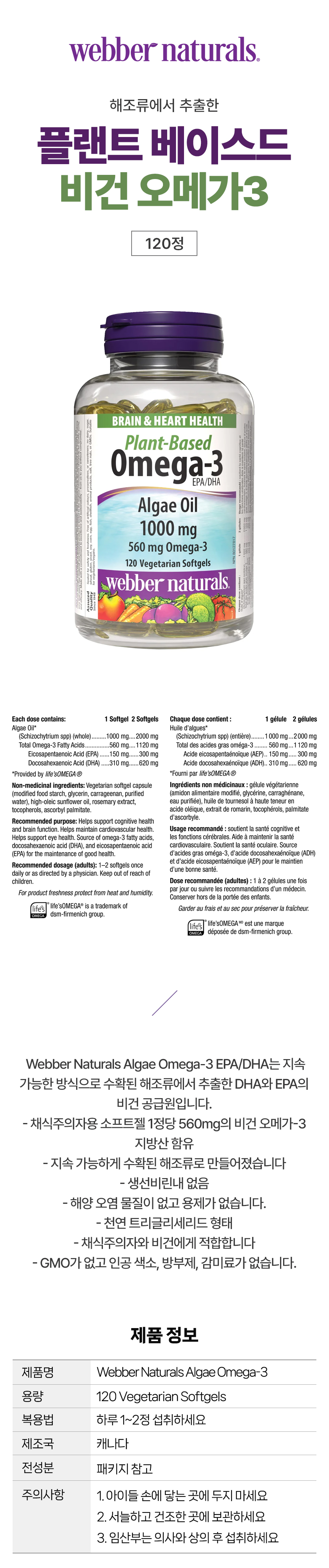 웨버네추럴스 플랜트 베이스드 비건 오메가3 캐나다 코스트코