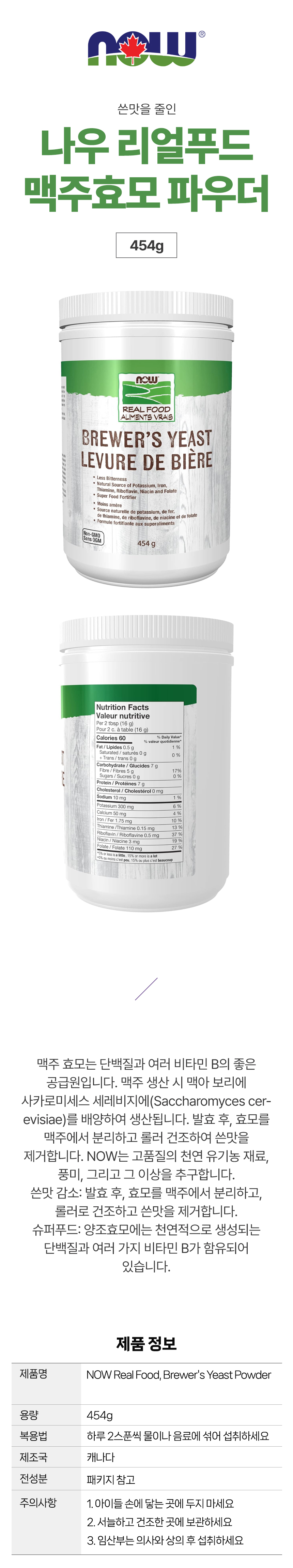 나우 리얼푸드 맥주효모 파우더 Brewers Yeast 454g
