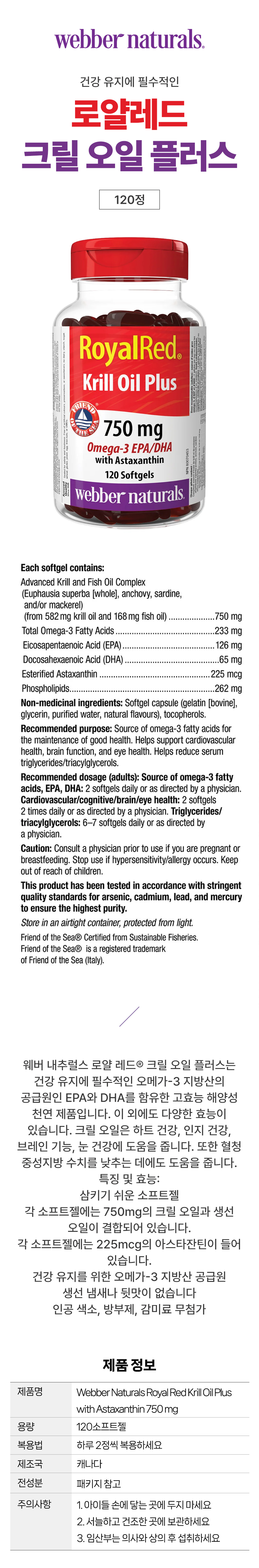 웨버네추럴스 로얄 레드 크릴 오일 플러스 아스타잔틴 120정 캐나다 코스트코