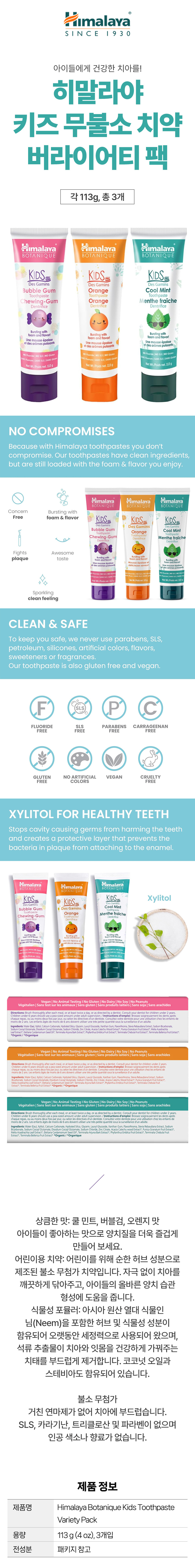 히말라야 키즈 무불소 치약 버라이어티 팩 113g 3개입