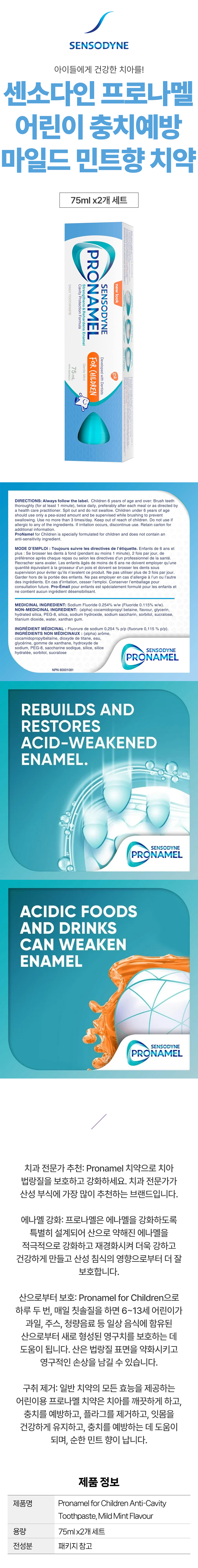 센소다인 프로나멜 어린이 안티캐비티 마일드 민트향 치약 75ml 2개세트