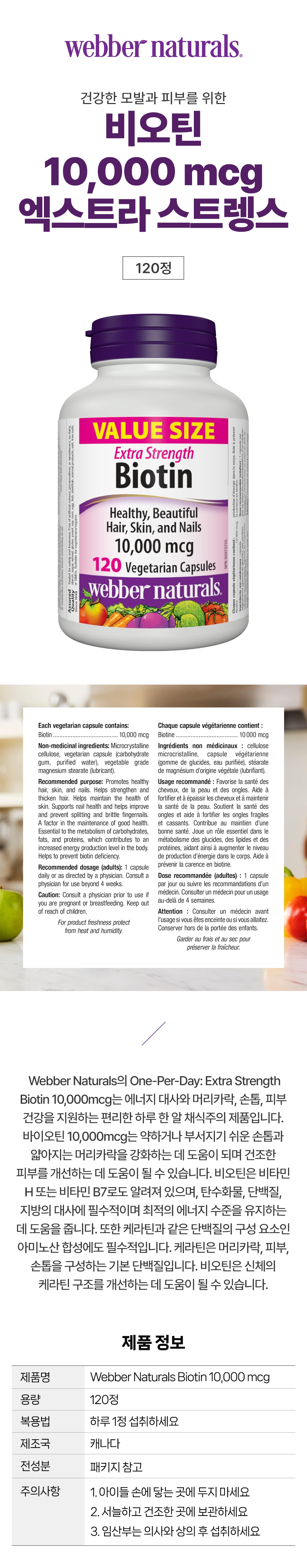 웨버내추럴스 비오틴 10,000mcg 대용량 엑스트라 스트렝스 120캡슐