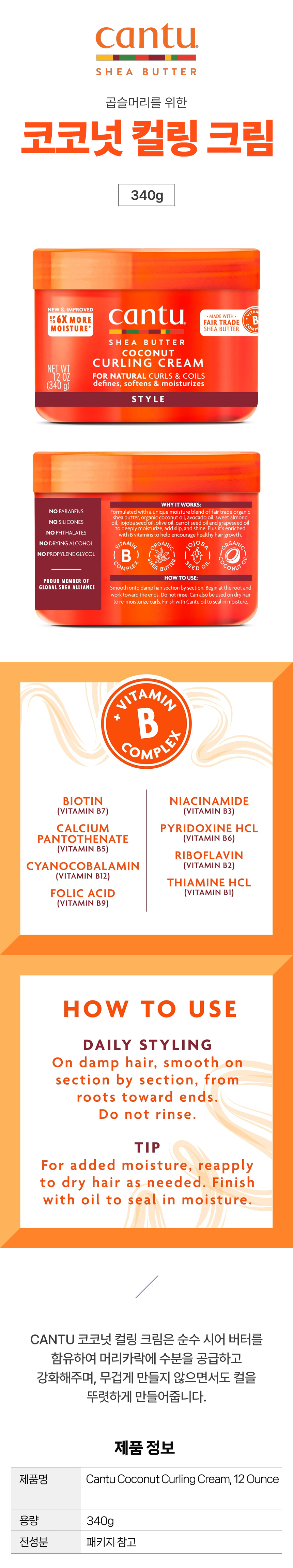 칸투 코코넛 컬링 크림 340g 시어버터 함유 곱슬머리 관리 필수템