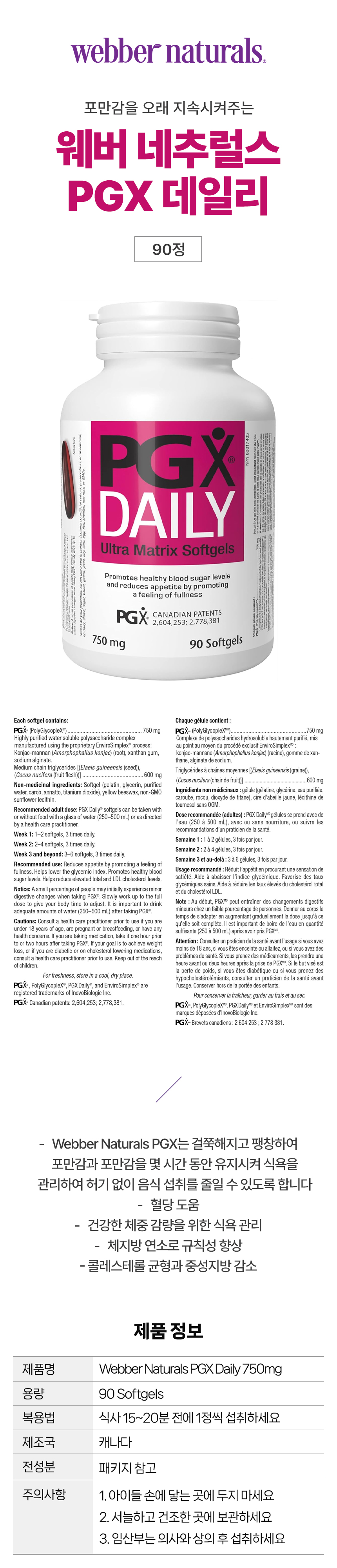 웨버네추럴스 PGX Daily 90정 식사량 관리