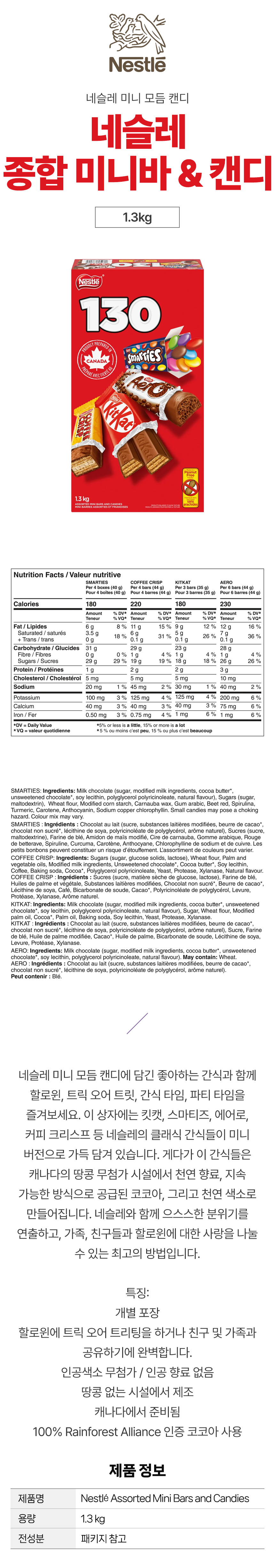 네슬레 종합 미니바 및 캔디 1.3kg 커피크리스프 킷캣 스마티스 코스트코 캐나다