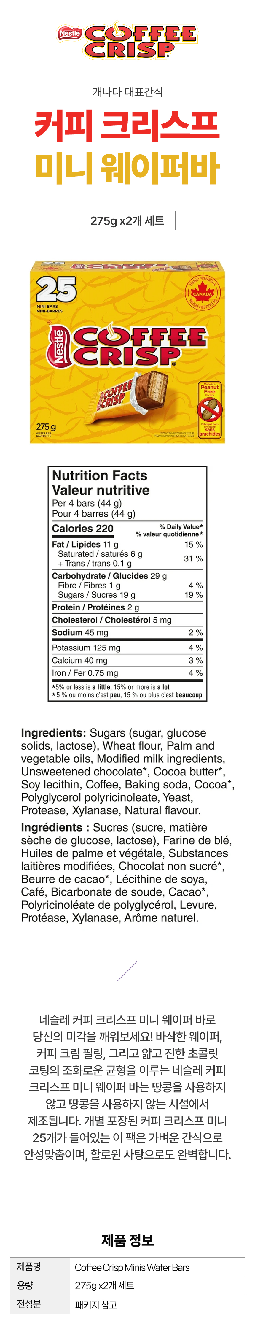 캐나다 국민간식 네슬레 커피 크리스프 미니 Coffee Crisp Mini 275g 2개 세트