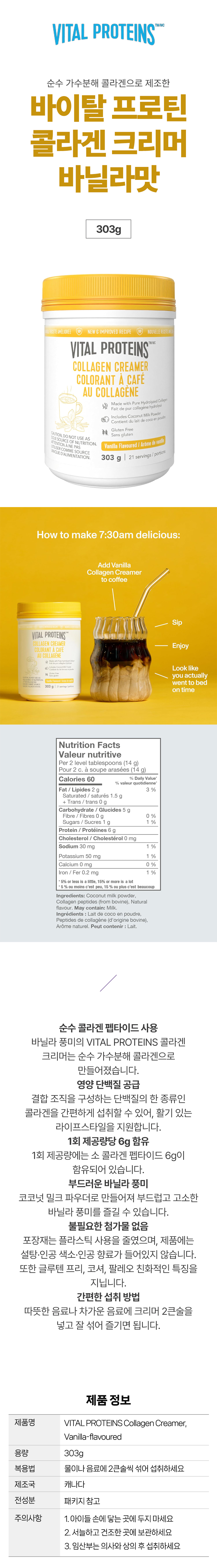 바이탈 프로틴 콜라겐 크리머 바닐라맛 303g 콜라겐 펩타이드 함유 무설탕 커피 프림 파우더