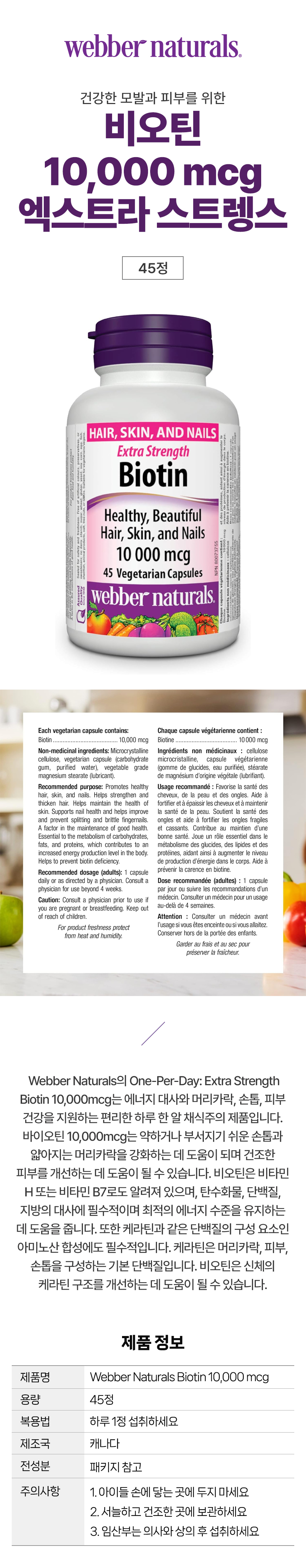 웨버내추럴스 비오틴 10,000mcg 엑스트라 스트렝스 45캡슐