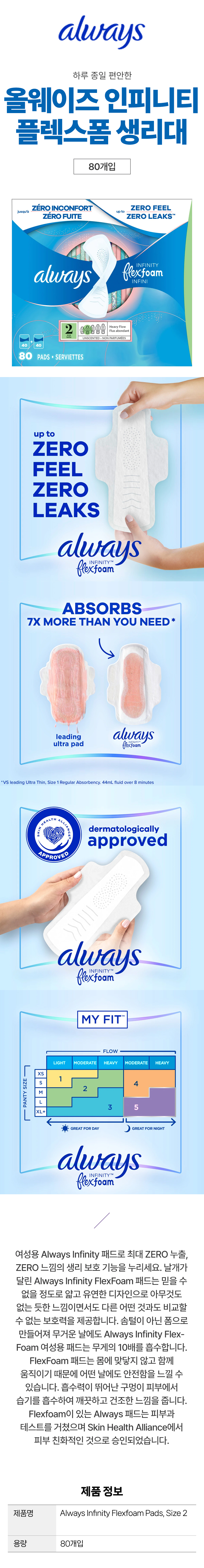 올웨이즈 인피니티 플렉스폼 Flexfoam 생리대 80개입 캐나다 코스트코