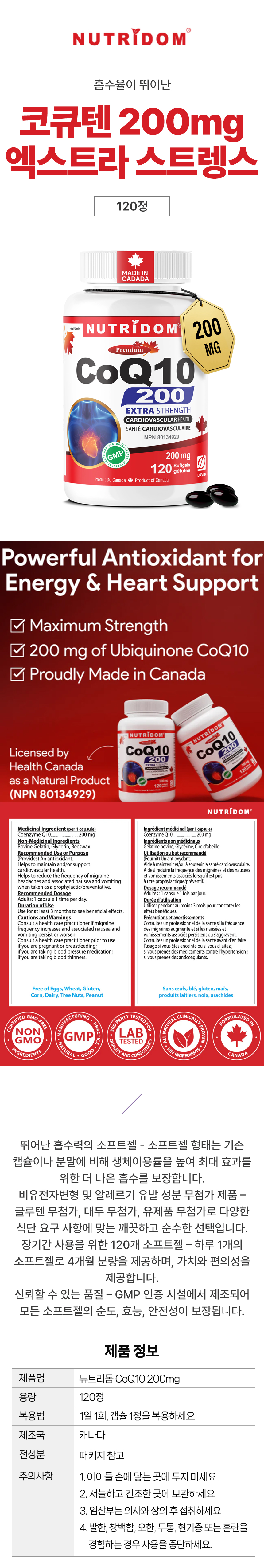 뉴트리돔 코큐텐 CoQ10 200mg 엑스트라 스트렝스 120정