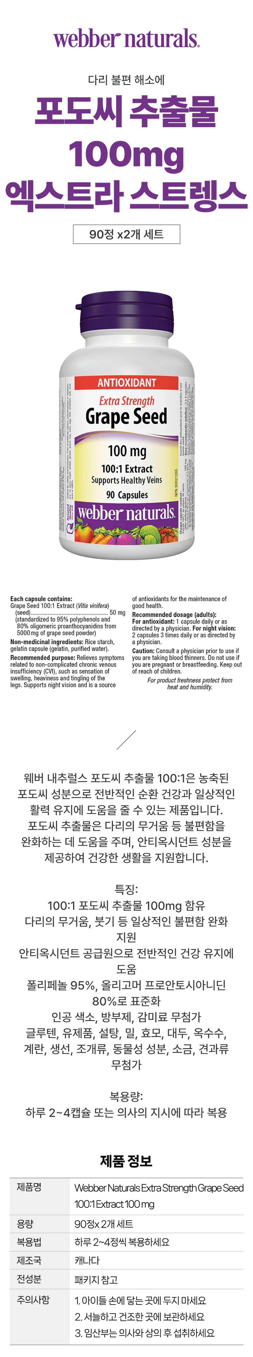 웨버내추럴스 포도씨 추출물 100mg 엑스트라 스트렝스 90정 2개 세트 캐나다 코스트코