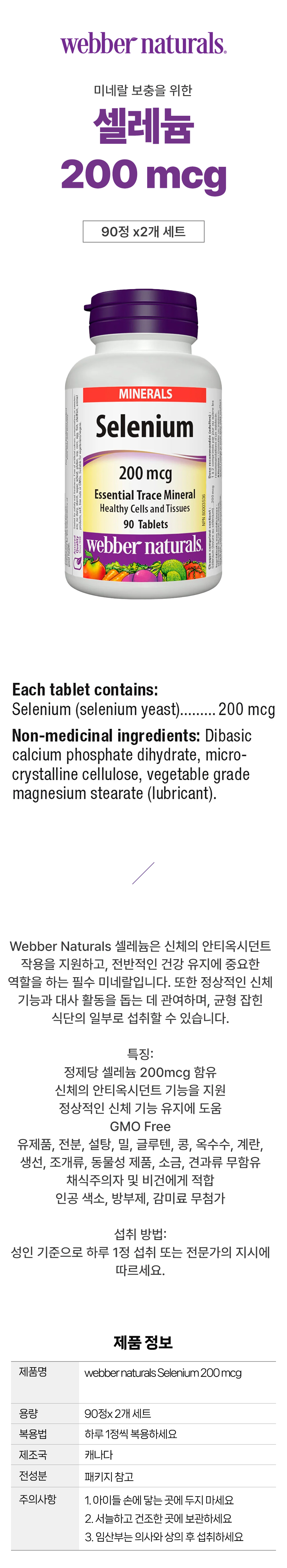 웨버내추럴스 셀레늄 200mcg 90정 2개 세트 캐나다 코스트코