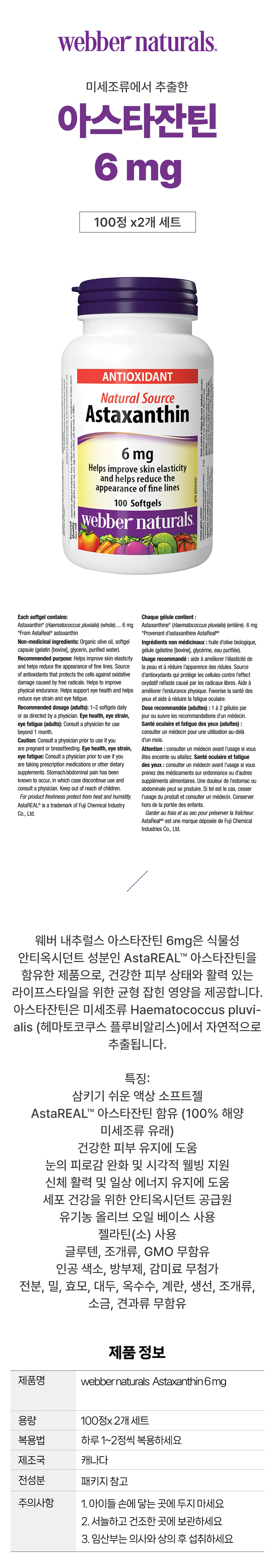 웨버내추럴스 아스타잔틴 6mg 100정 2개 세트 캐나다 코스트코