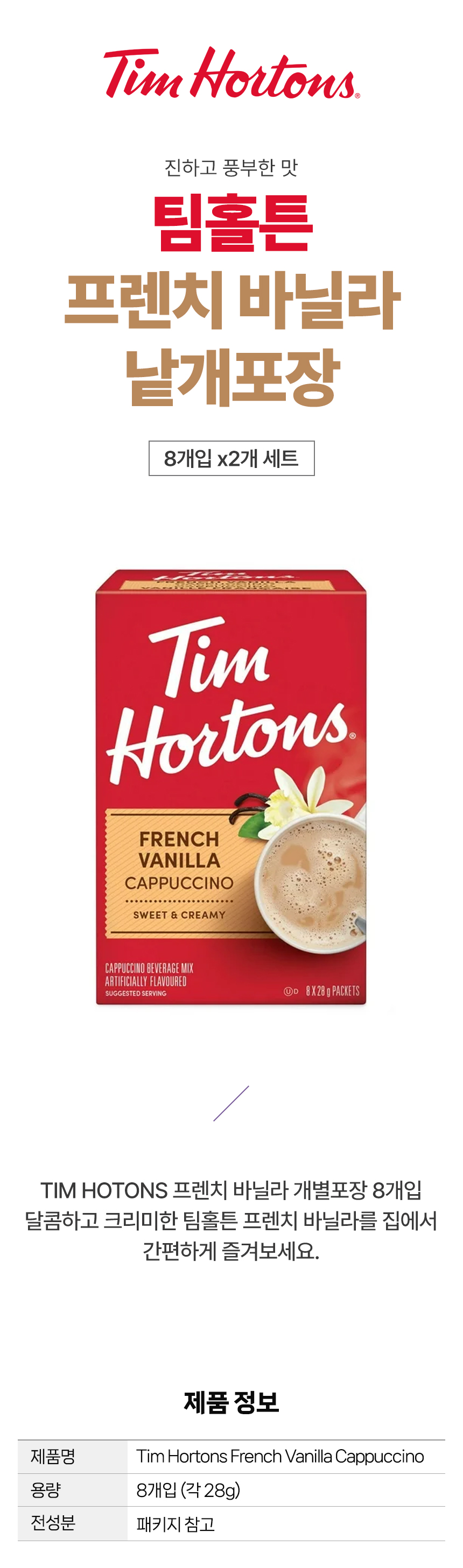 팀홀튼 프렌치 바닐라 카푸치노 개별포장 8개입 2개 세트 집에서 즐기는 Tim Hortons