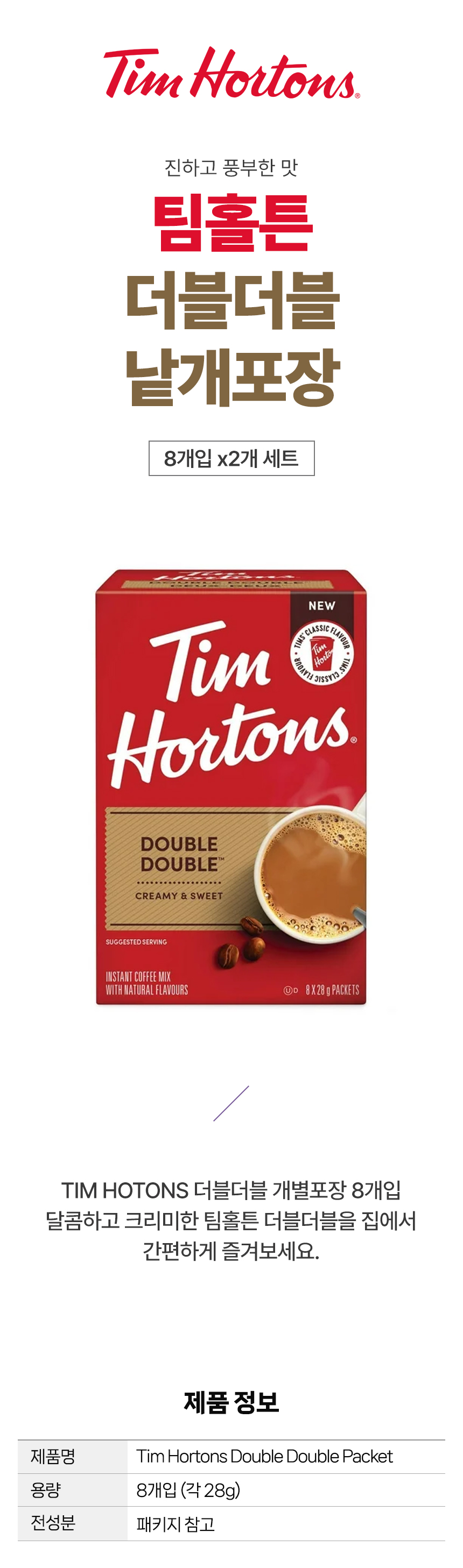 팀홀튼 더블더블 개별포장 8개입 2개 세트 집에서 즐기는 Tim Hortons