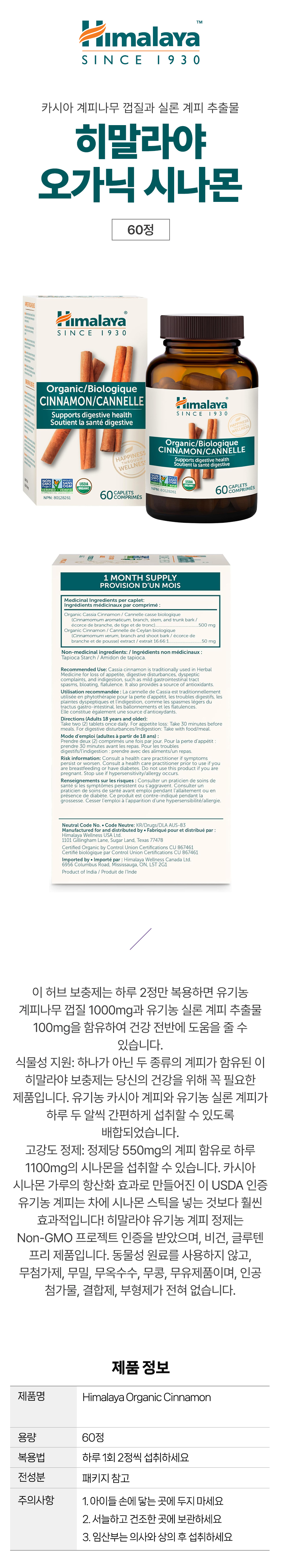 히말라야 오가닉 시나몬 계피 추출물 1100mg 60정