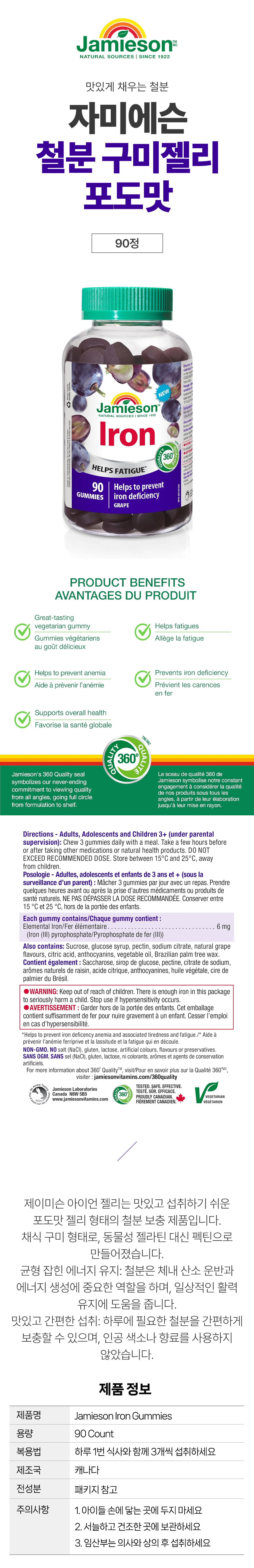 자미에슨 철분 구미젤리 포도맛 90정 맛있는 철분 보충