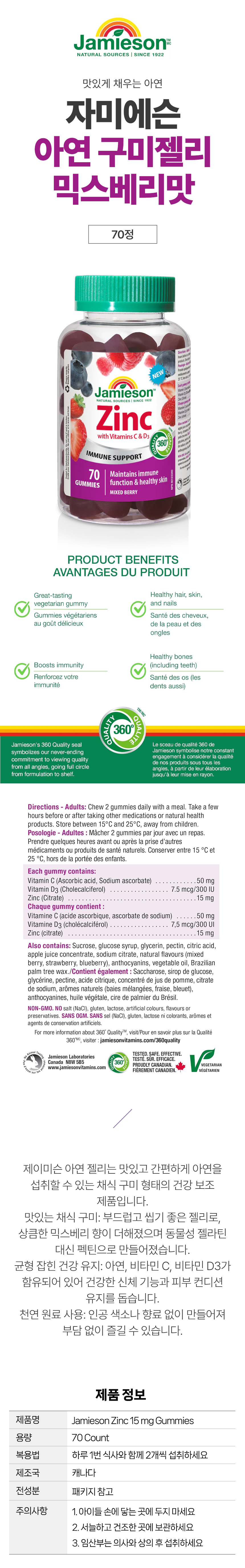 자미에슨 아연 구미젤리 믹스베리맛 70정 간편히 채우는 아연