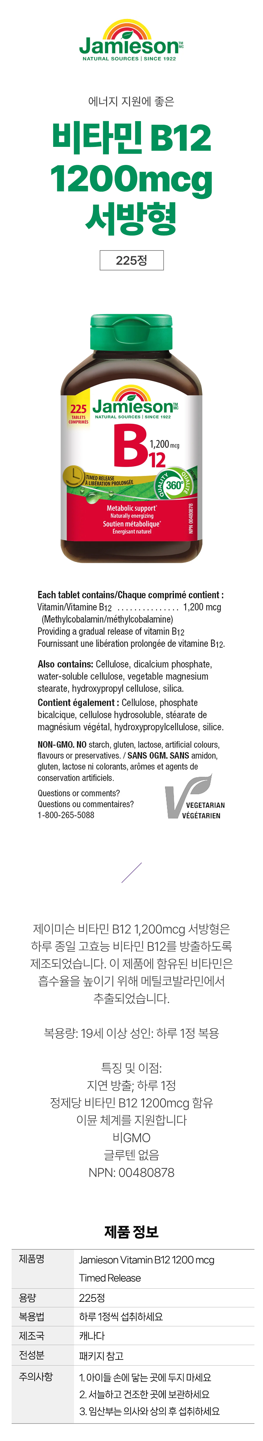 자미에슨 비타민 B12 1200mcg 서방형 225정 캐나다 코스트코