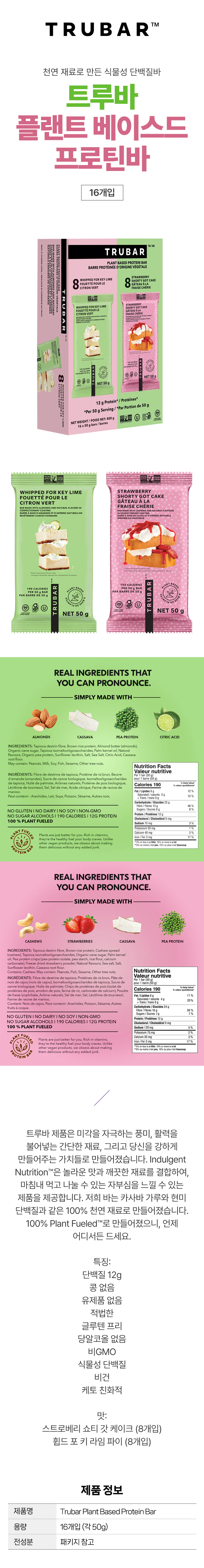 트루바 플랜트 베이스드 프로틴바 식물성 단백질 16개입 캐나다 코스트코