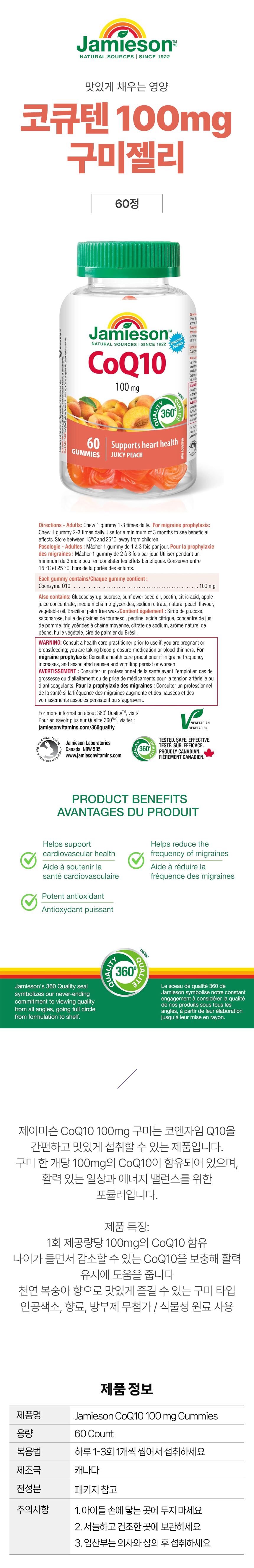 자미에슨 코큐텐 코엔자임 100mg 구미젤리 60정 복숭아맛