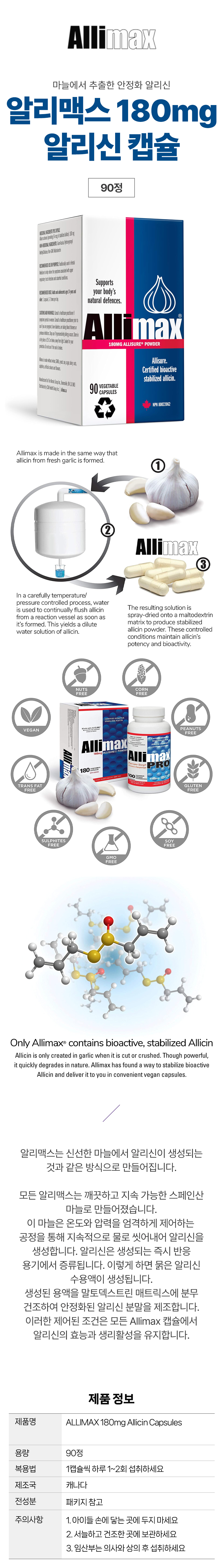알리맥스 ALLIMAX 180mg 알리신 캡슐 90정 냄새없는 마늘추출물 보충제