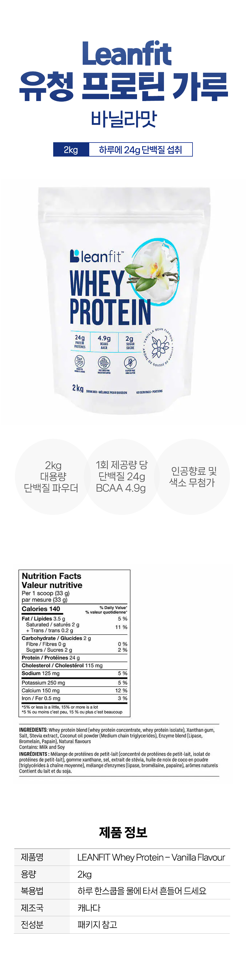 코스트코 LEANFIT 유청 프로틴 단백질 바닐라맛 2kg