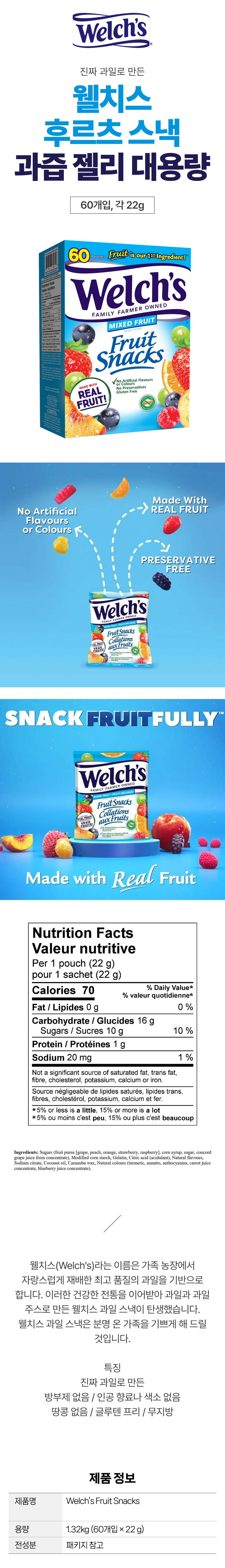 웰치스 후르츠 스낵 과즙 젤리 대용량 22g 60개입 코스트코 캐나다