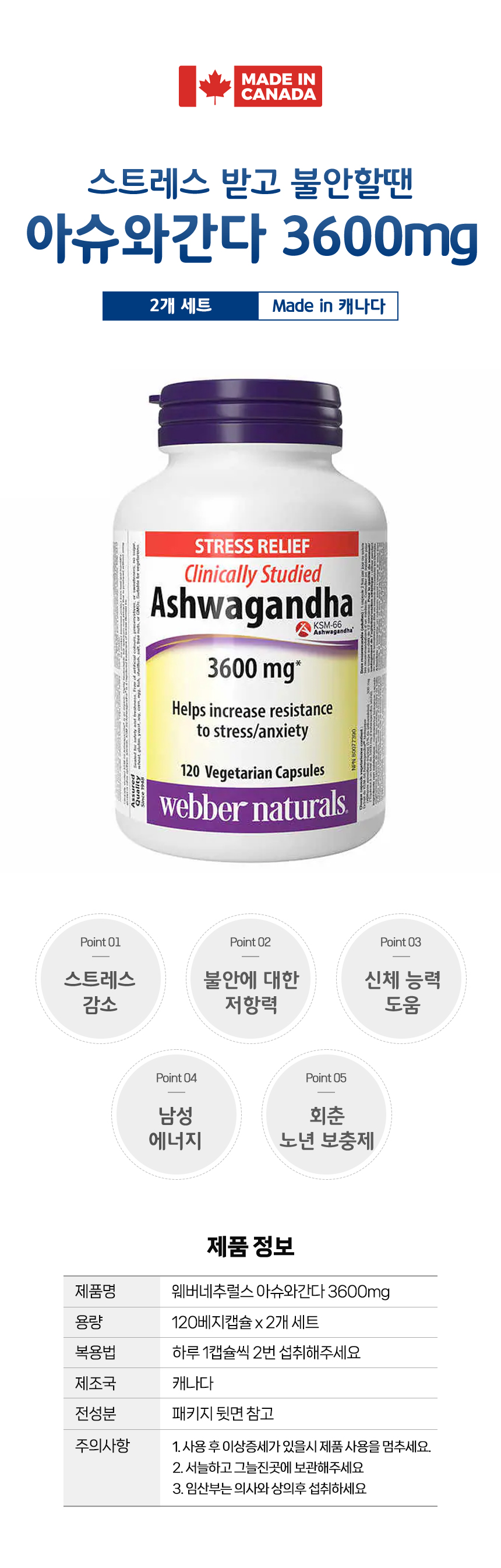 웨버내추럴스 아슈와간다 3600mg 120정 x 2개 세트