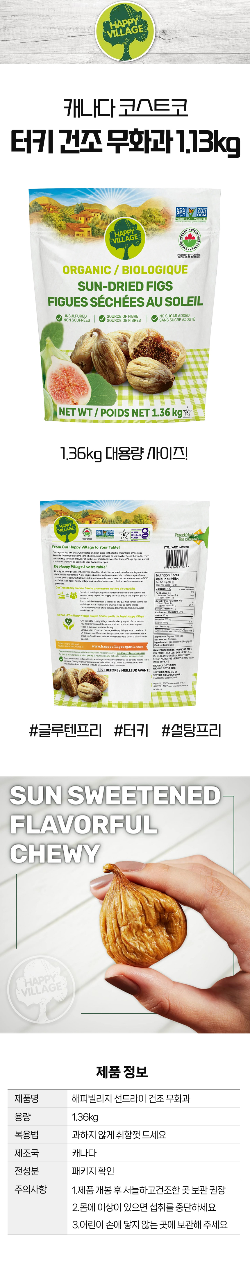 해피빌리지 선드라이 말린 건조 무화과 건과일 1.36kg