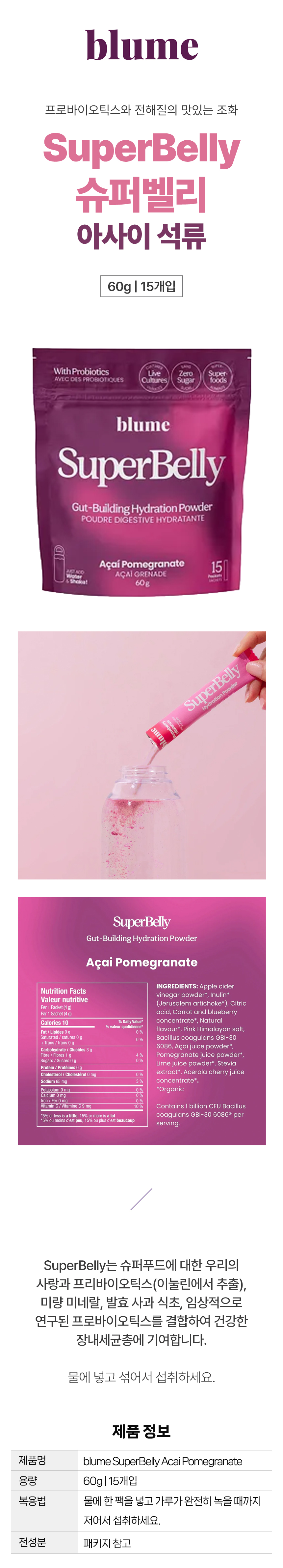 블룸 슈퍼벨리 아사이 석류 15개입 프로바이오틱스 전해질