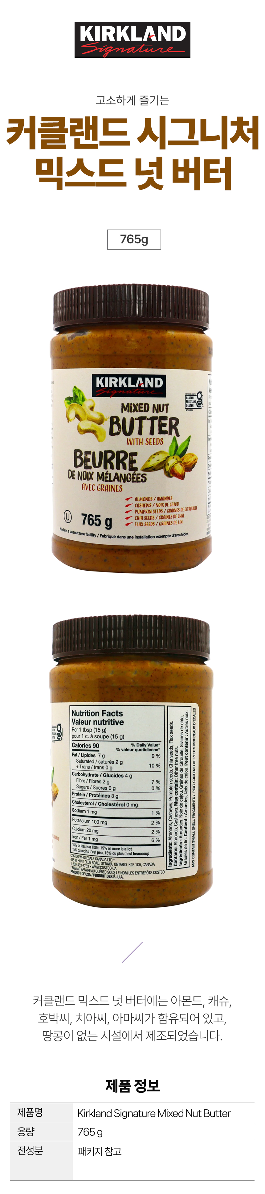 커클랜드 시그니처 믹스드 넛 버터 765g 아몬드 캐슈 호박씨 치아씨드