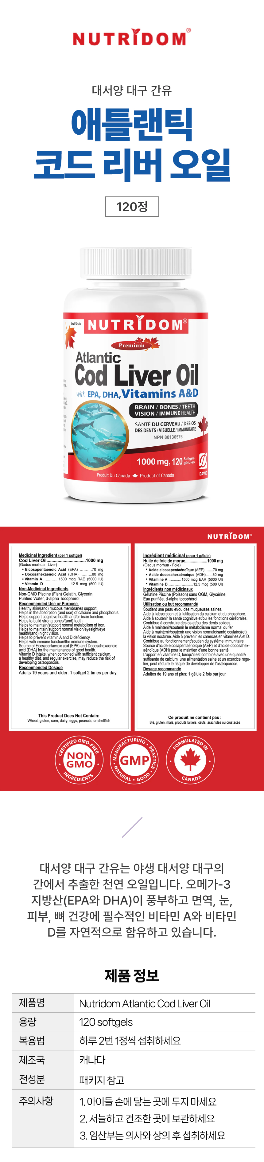 뉴트리돔 애틀랜틱 코드 리버 오일 대구간유 120정