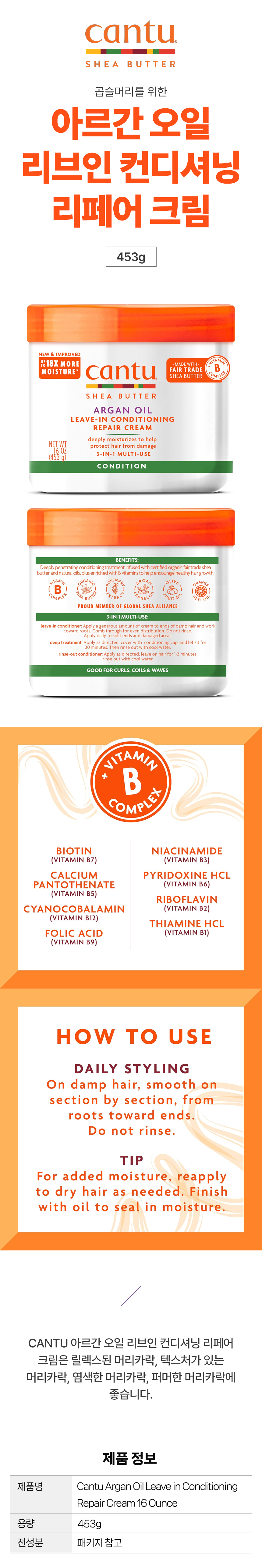 칸투 아르간 오일 리브인 컨디셔닝 리페어 크림 453g 곱슬머리 필수템