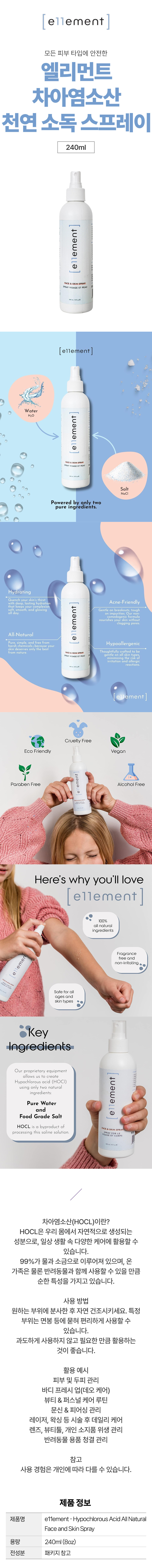 엘리먼트 차아염소산 천연 식염수 소독 스프레이 240ml 모든 피부 타입