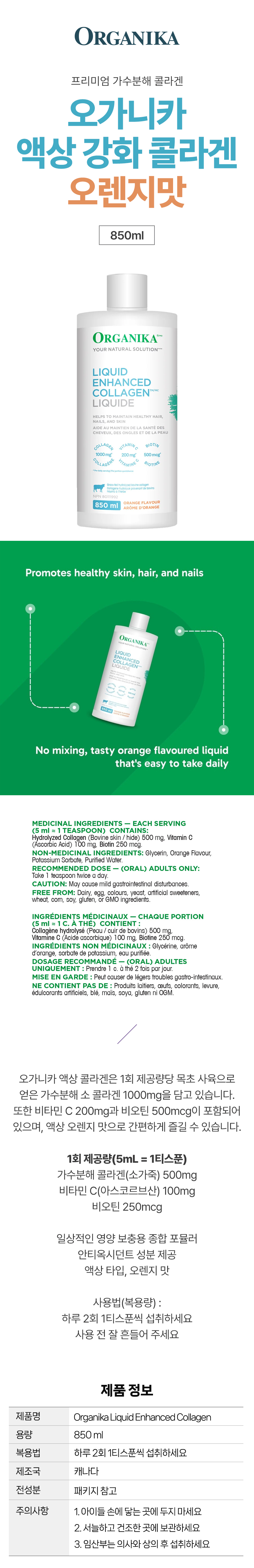 오가니카 액상 강화 콜라겐 오렌지맛 850ml 캐나다 코스트코